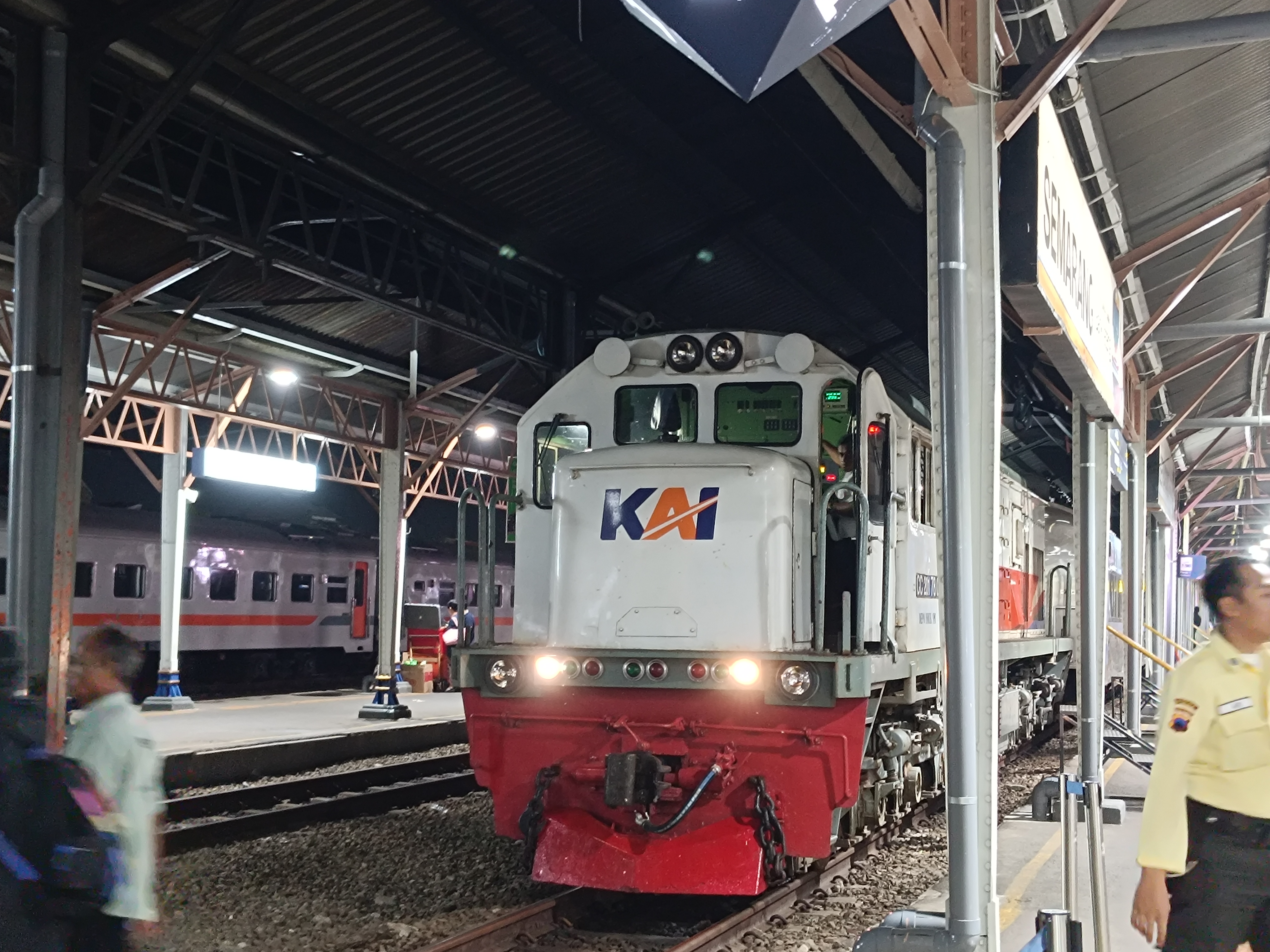 Kedatangan Lokomotif di stasiun Lamongan